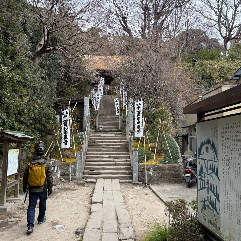 鎌倉の市街地を抜け、金沢街道を東へ。辿り着いたのは鎌倉最古の寺、杉本寺。 目の前に広がるのは、長い年月が作り上げた「苔の階段」の圧倒的な美しさです。午前中に見た坂倉準三氏の計算し尽くされた建築美とは対照的な、自然と時間が織りなす造形美に心が洗われます。