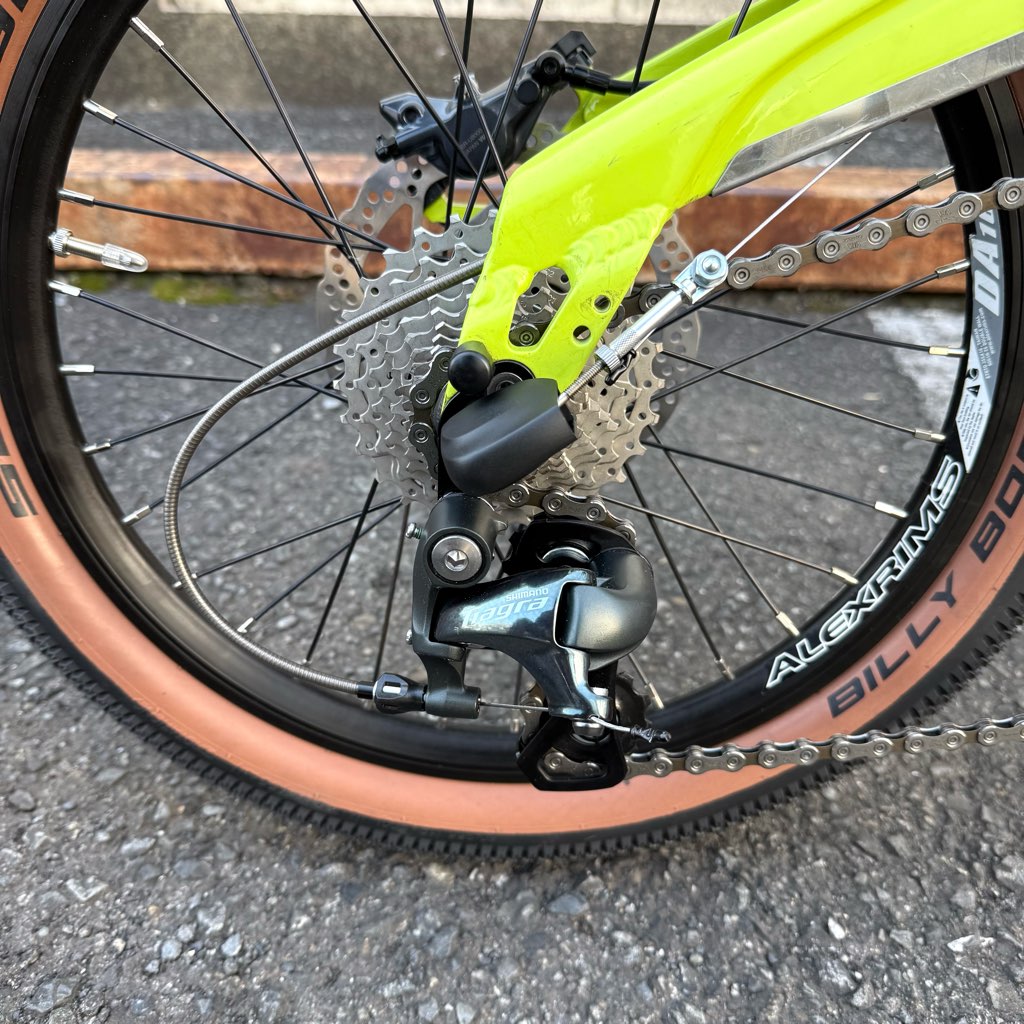 計算上のギア比は、トップ(内装H×外装11T)で6.77! これは18インチ(2.0幅)のタイヤでも、ケイデンス80rpmで時速45km、回せば時速60km近くまでカバーできるモンスターマシンへと進化しました。
