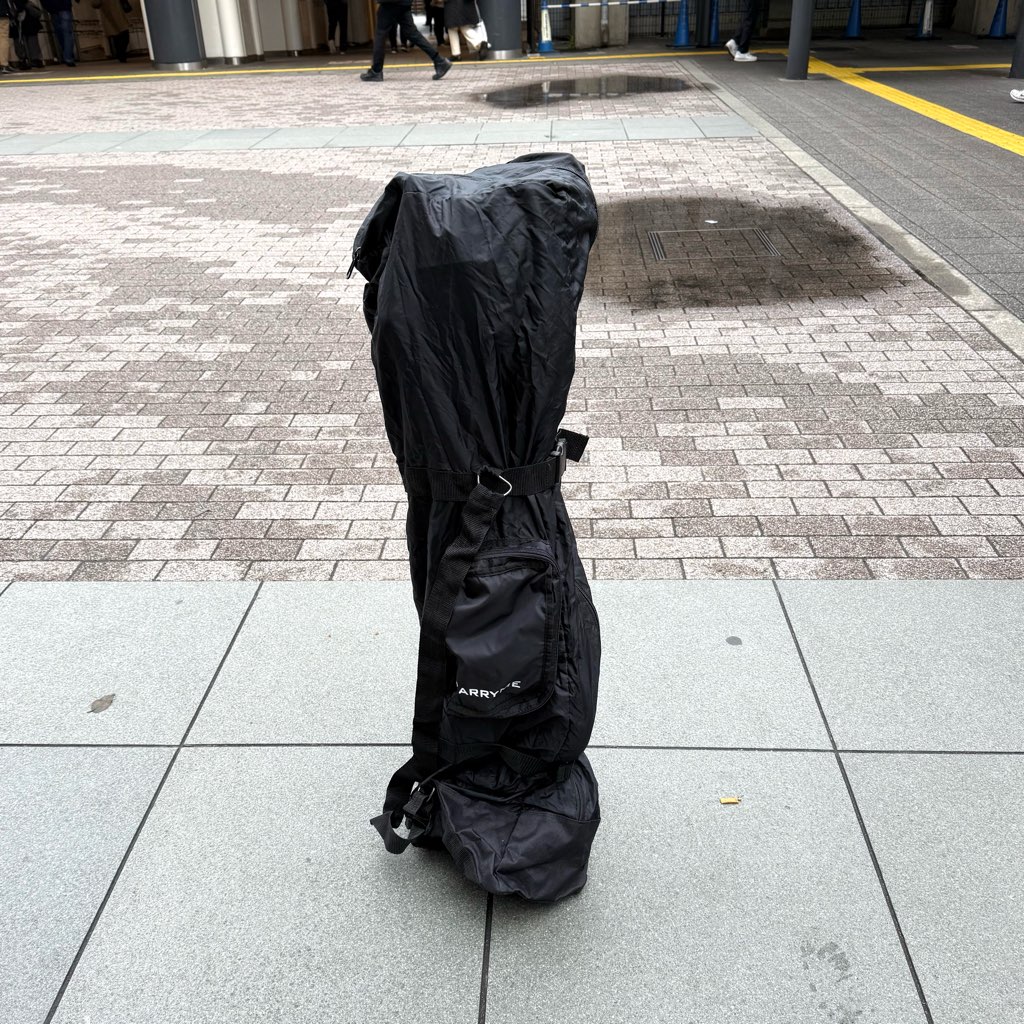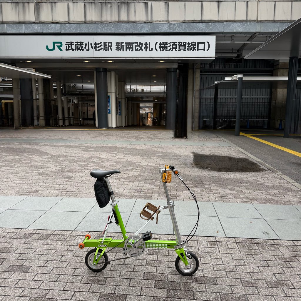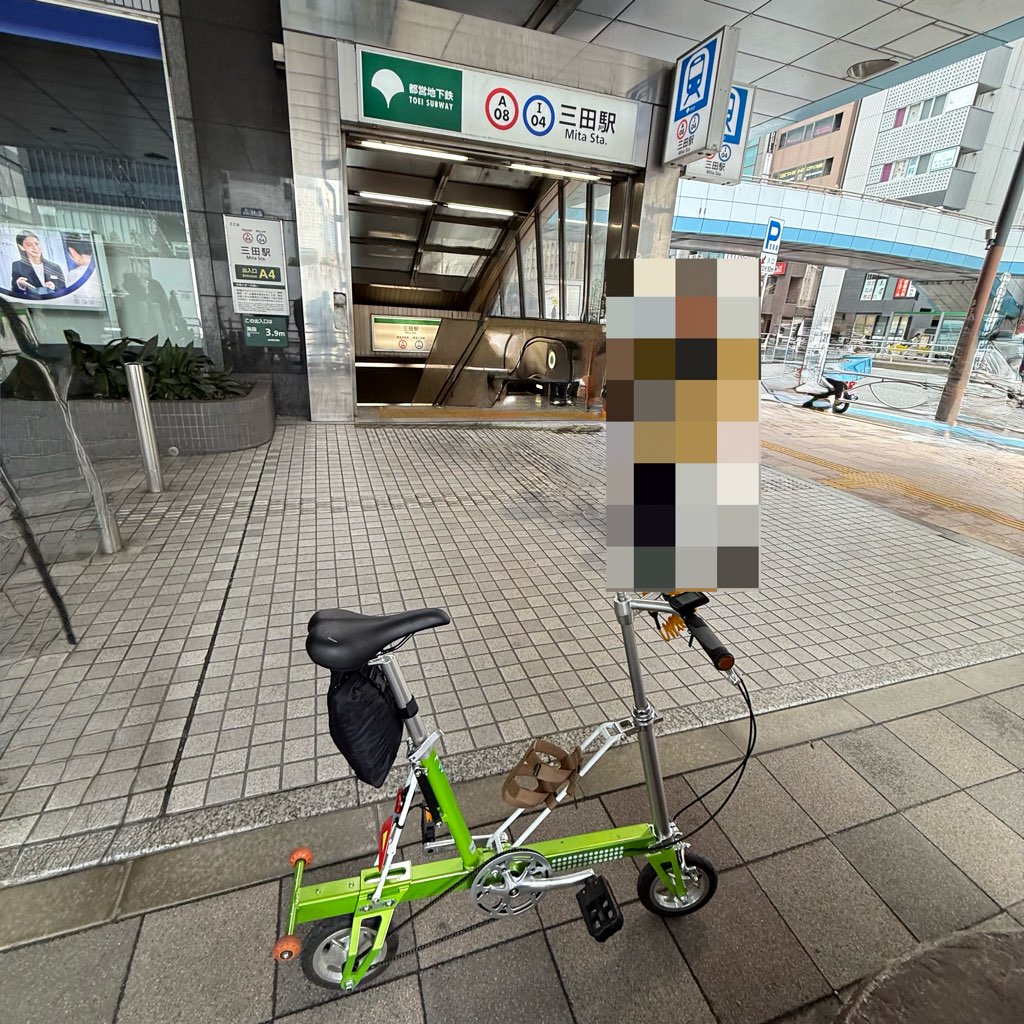 今回のルートは、武蔵小杉から新橋まで輪行。縦長にたためるCarryMeなら、混雑した車内でも邪魔になりません。