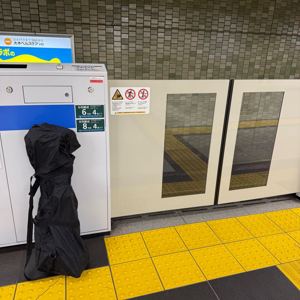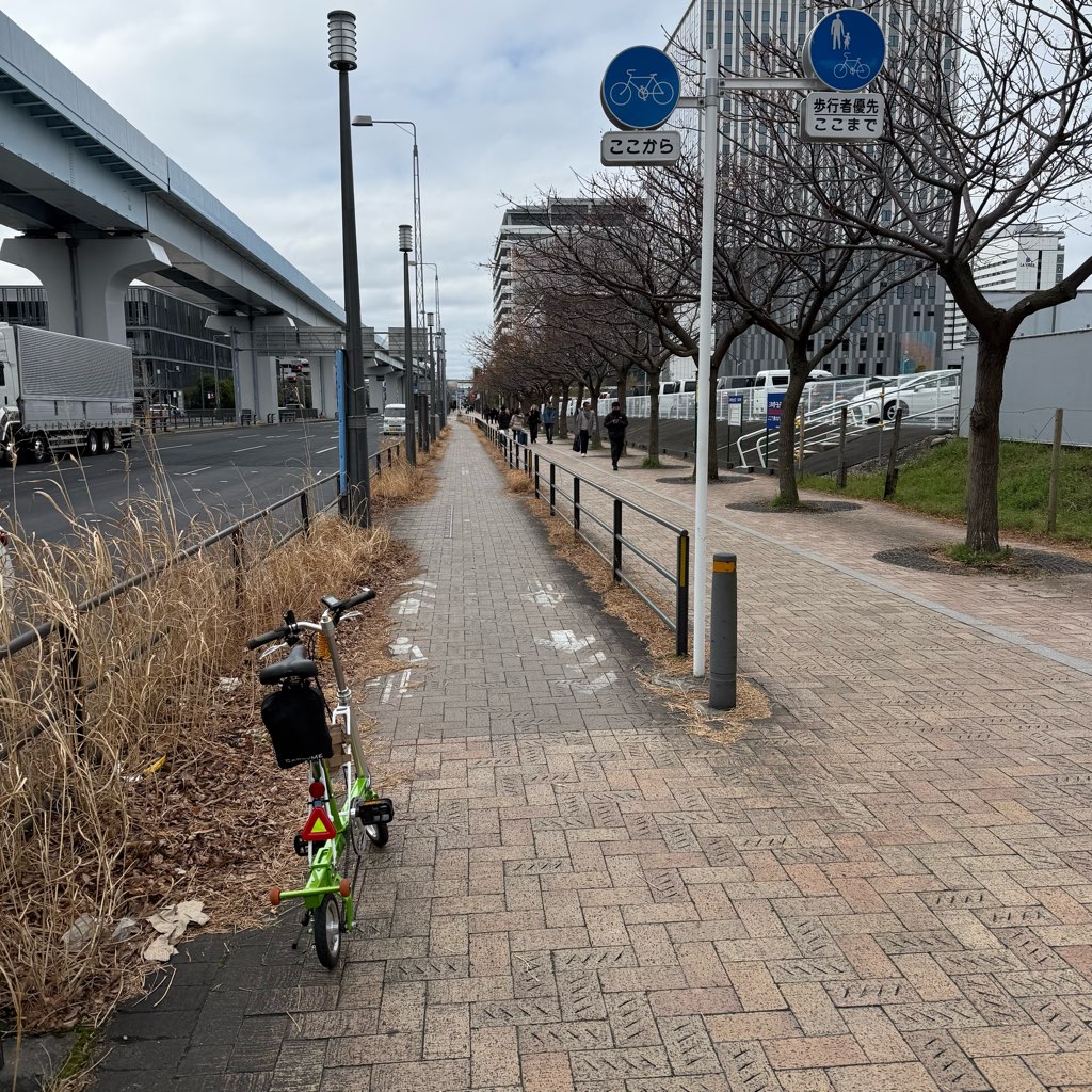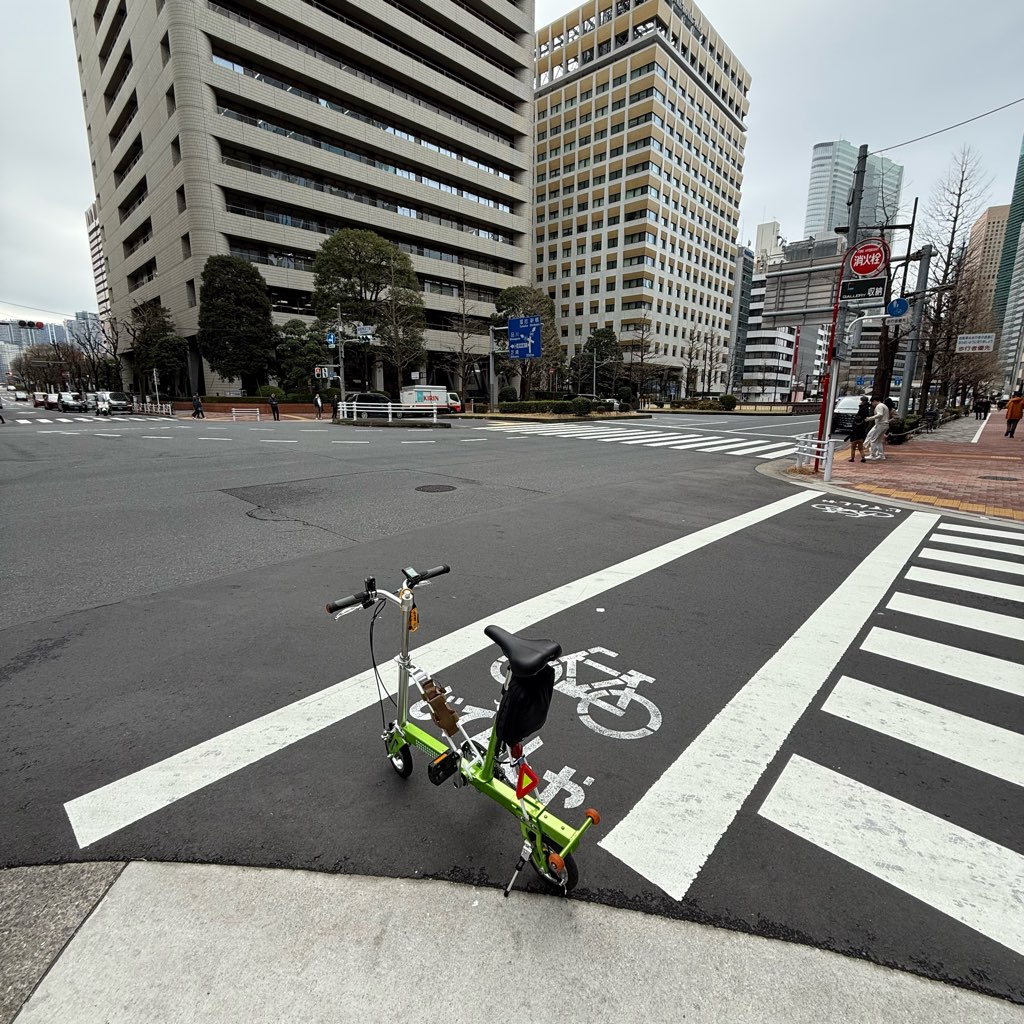 今回のルートは、武蔵小杉から新橋まで輪行。縦長にたためるCarryMeなら、混雑した車内でも邪魔になりません。